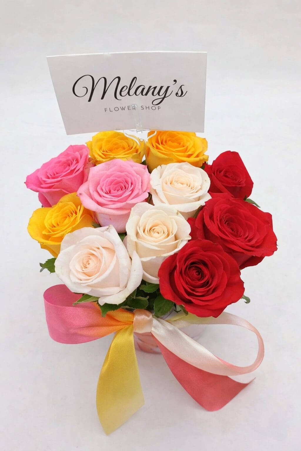 Puedes escoger el color de las rosas que desees enviar al hacer tu orden por WhatsApp o directamente desde nuestro sitio web. Solamente coloca el color que desees en una nota en tu pedido y te brindaremos información acerca de la disponibilidad y tiempo de entrega de tu arreglo de rosas.