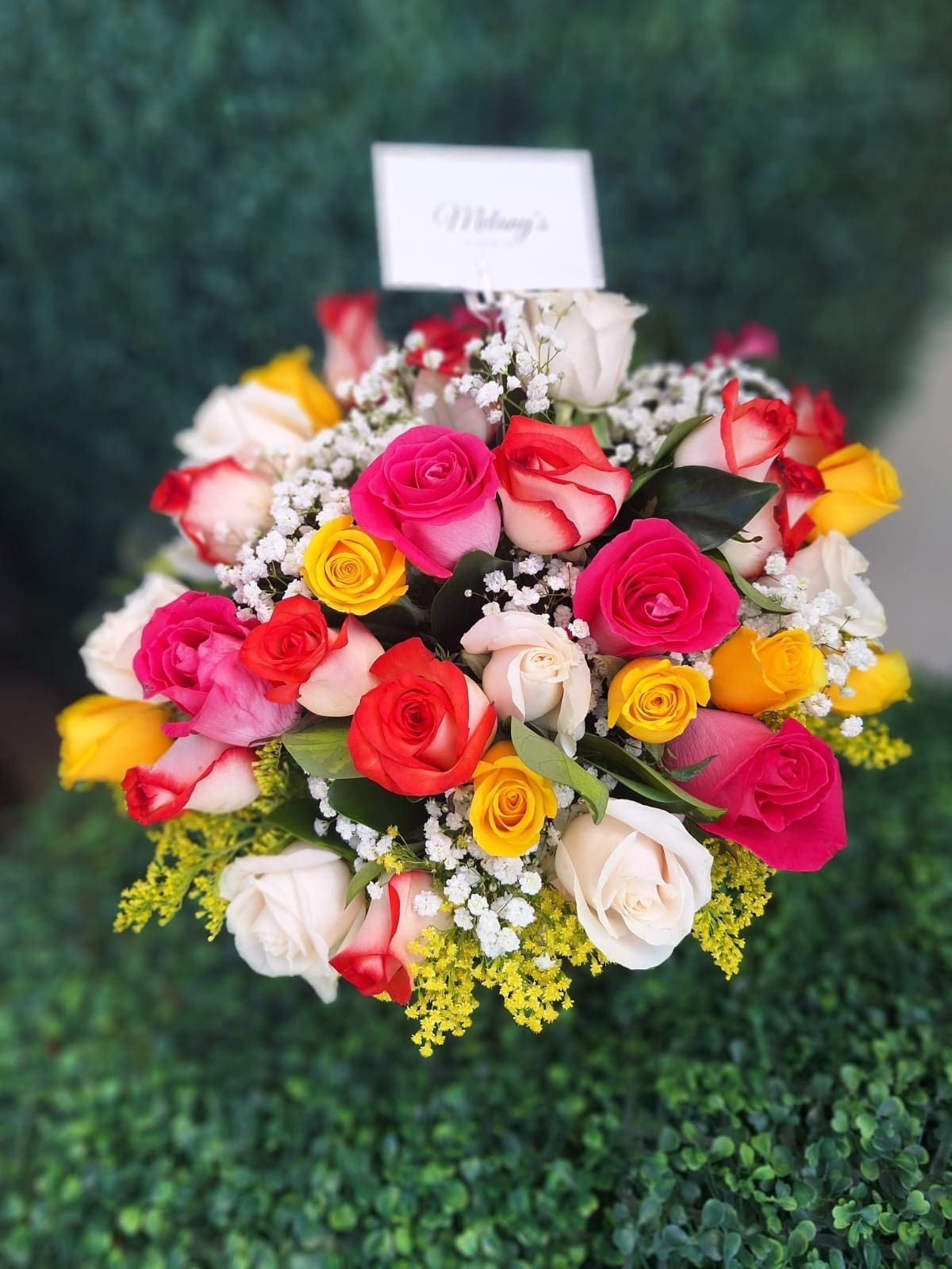 Un elegante arreglo floral con 48 rosas en el color que escojas. La forma redonda de este arreglo floral le permite lucir por completo una gran cantidad de rosas. El color de las cuatro docenas de rosas en este arreglo puede variar dependiendo de lo que decidas. Nuestra recomendación es el rojo para un arreglo para esa persona especial o para un cumpleaños. Rosas blancas y amarillas para amistades y rosas color rosa para ocasiones especiales.